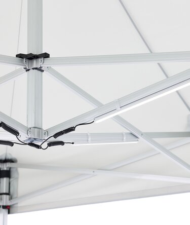 Egal ob es sich um Weihnachtsmärkte oder um Sommermärkte handelt, die geeignetste Beleuchtung für Faltpavillons auf Märkten sind LED-Streifen. Ihr Licht kann gedimmt werden und sie können dank des Akkus sogar ohne Stromanschluss verwendet werden. Ihr Design fügt sich nahtlos in das des Faltpavillons ein, kreiert ein harmonisches Gesamtbild und das Licht wird deine Produkte in den Mittelpunkt stellen. Außerdem verbrauchen LED-Streifen sehr wenig Strom und werden nicht heiß!